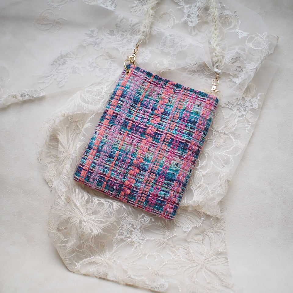フランスMALHIA KENTツイードを使ったスマホポシェット。