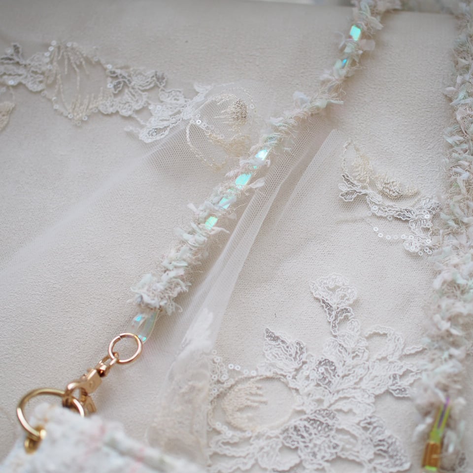 ・ストラップは、ベースにビニール素材の芯に糸を引き揃えて編み込んでいます。ポシェットサイズに入る重量は耐えれますが、ポシェットサイズより大きいバッグは負荷がかかるため、おすすめいたしません。