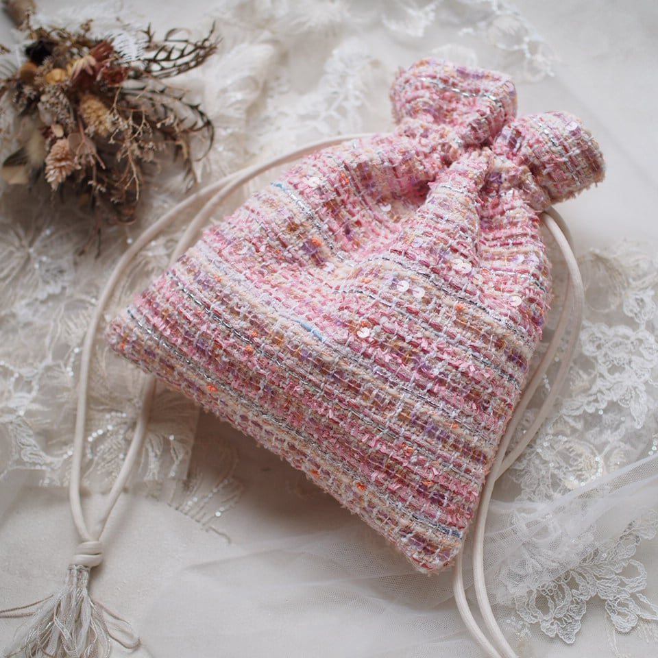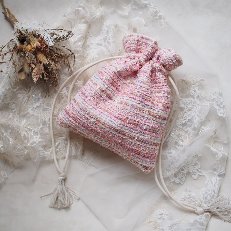 フランスツイード×Japanツイードを使ったmini巾着BAG