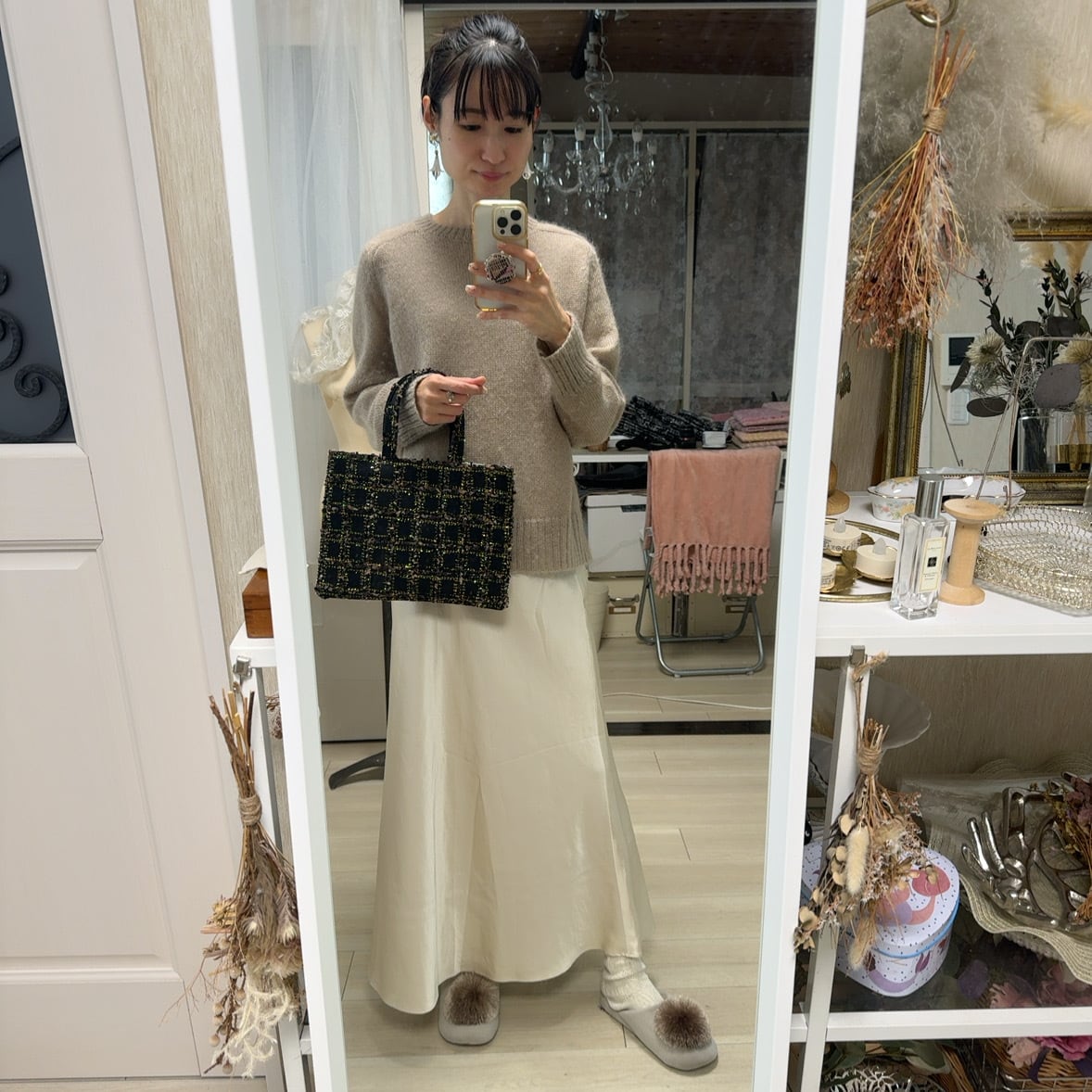 ヨーロッパツイードを使ったminiトートBAG。ゴールド糸のラメ感がとっても華やかでゴージャス。シンプルコーデを格上げしてくれます。両面同じツイード生地です。