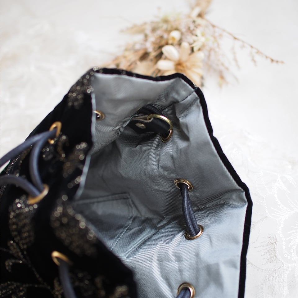 内側、両サイドにDカンを付けているので、別売りのチェーンなどを付けて斜めがけすることも可能です。