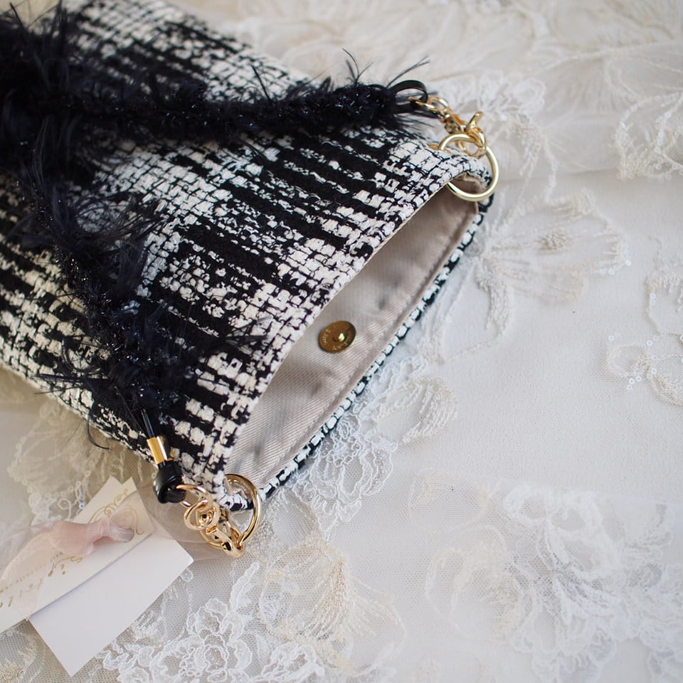 ・ストラップは、ベースにビニール素材の芯に糸を引き揃えて編み込んでいます。ポシェットサイズに入る重量は耐えれますが、ポシェットサイズより大きいバッグは負荷がかかるため、おすすめいたしません。
