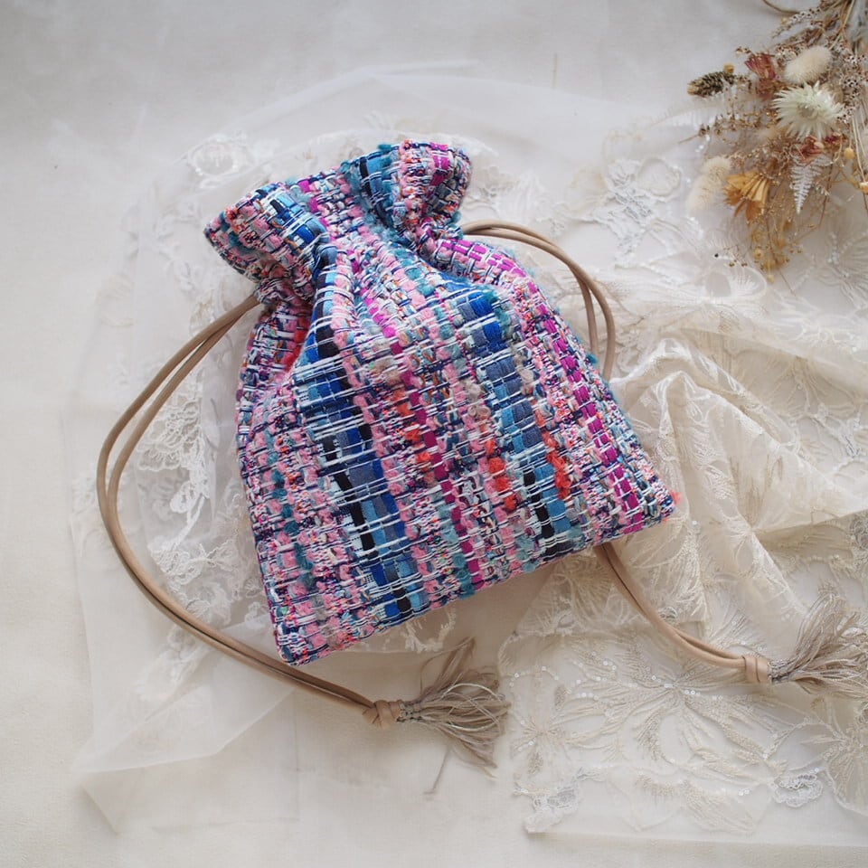 マリアケントツイードを使ったmini巾着BAG