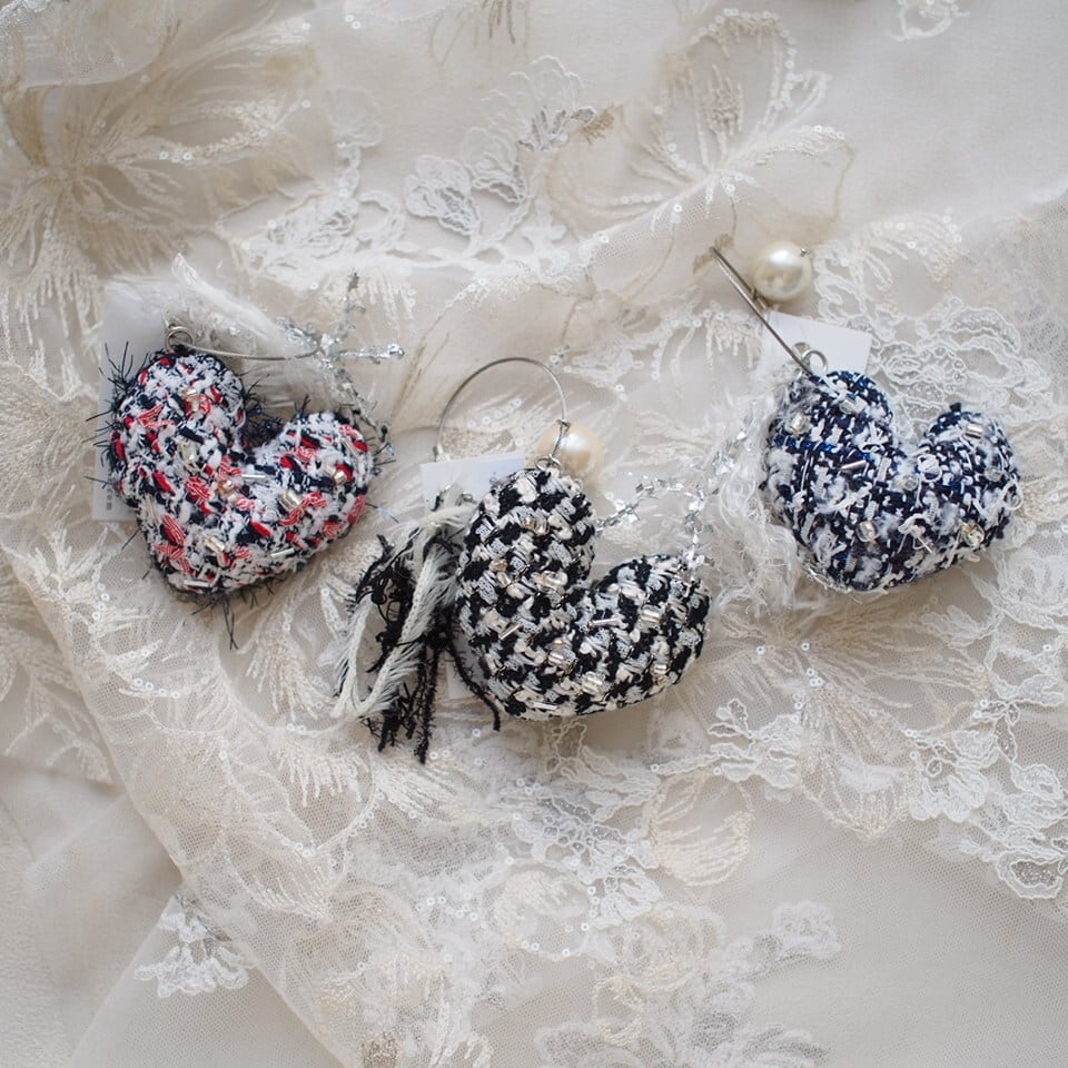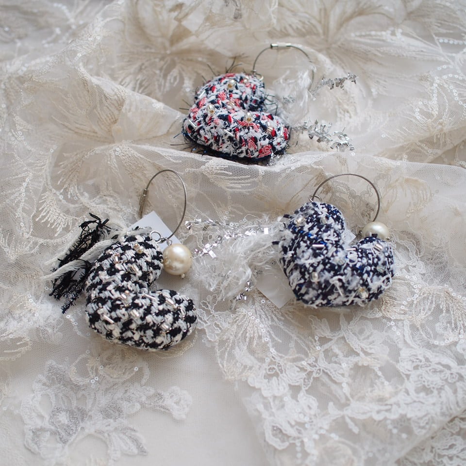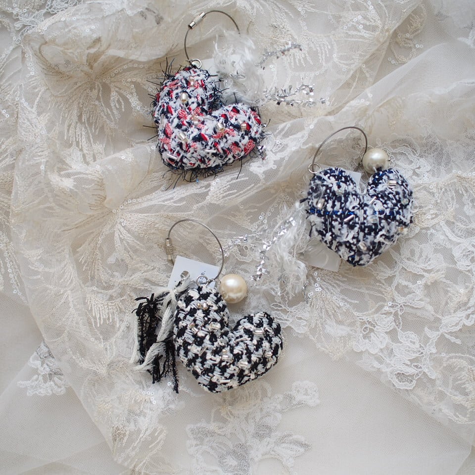 フロントにさまざまなビーズをチクチク縫い付けたバッグチャーム。