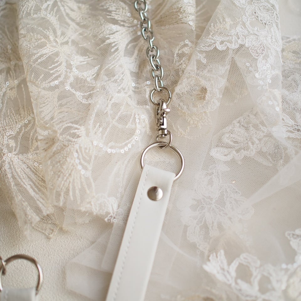 チェーンをつけると斜めがけに、外すと肩にかけられる長さになります。