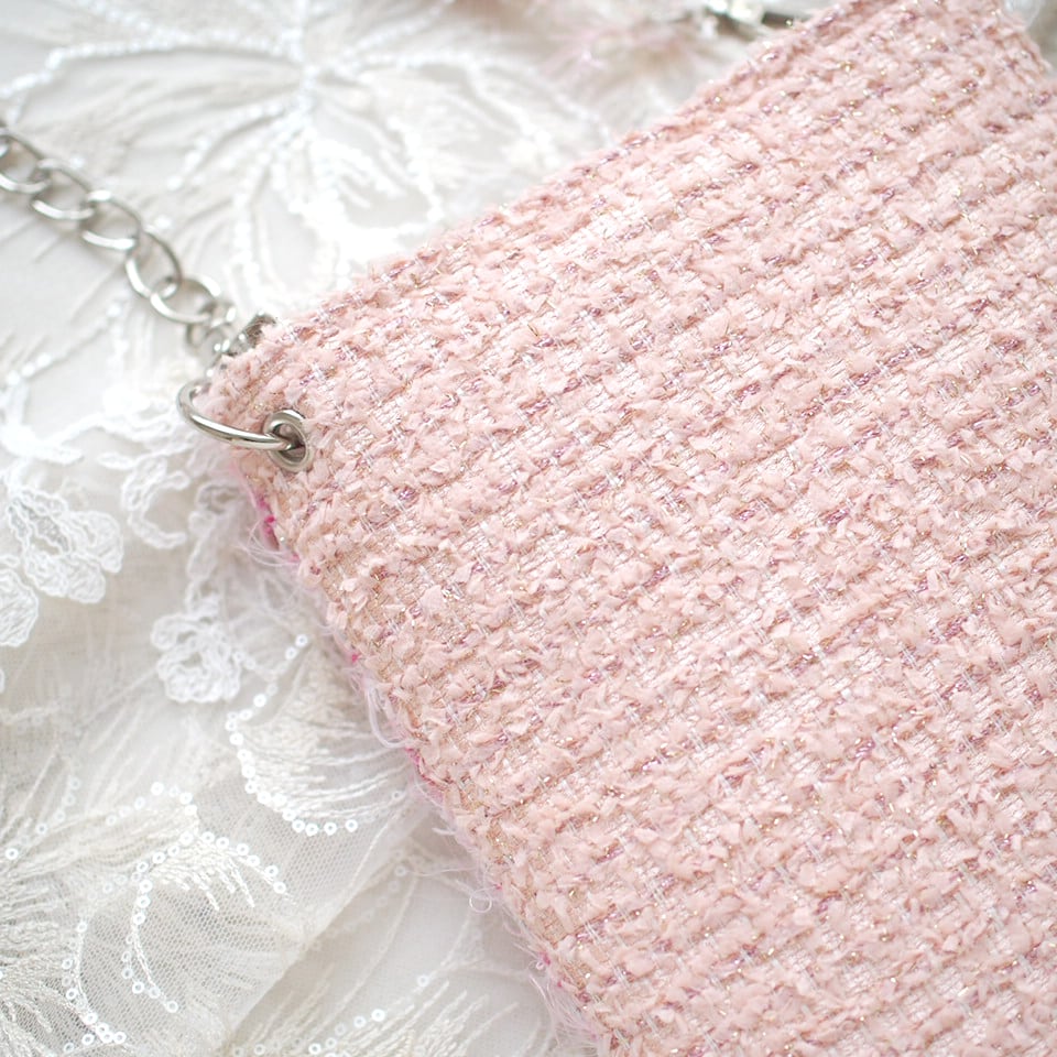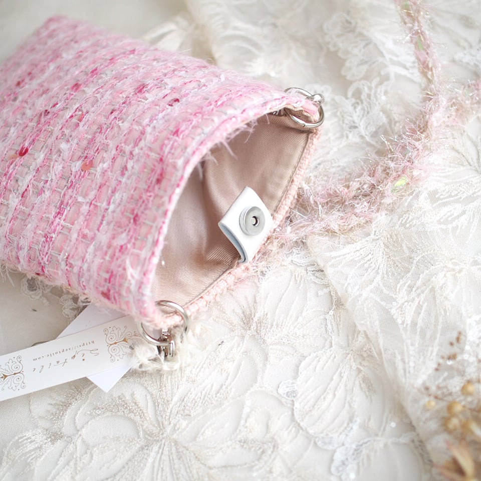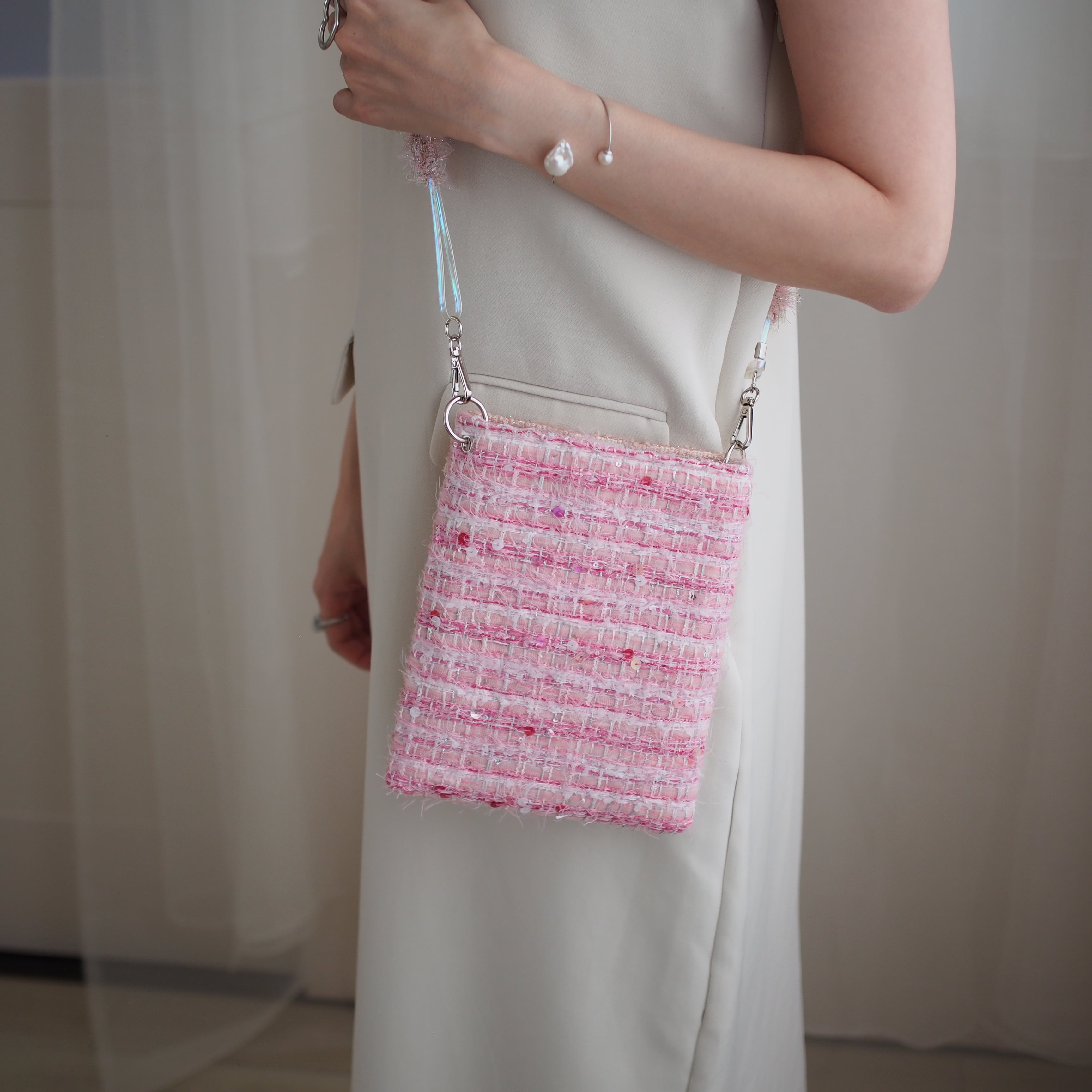 ・ストラップは、ベースにビニール素材の芯に糸を引き揃えて編み込んでいます。ポシェットサイズに入る重量は耐えれますが、ポシェットサイズより大きいバッグは負荷がかかるため、おすすめできません。