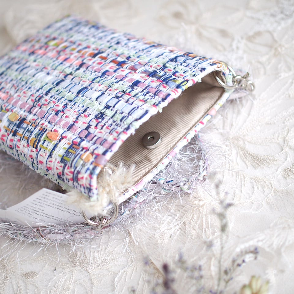 ・ストラップは、ベースにビニール素材の芯に糸を引き揃えて編み込んでいます。ポシェットサイズに入る重量は耐えれますが、ポシェットサイズより大きいバッグは負荷がかかるため、おすすめできません。