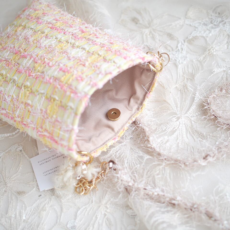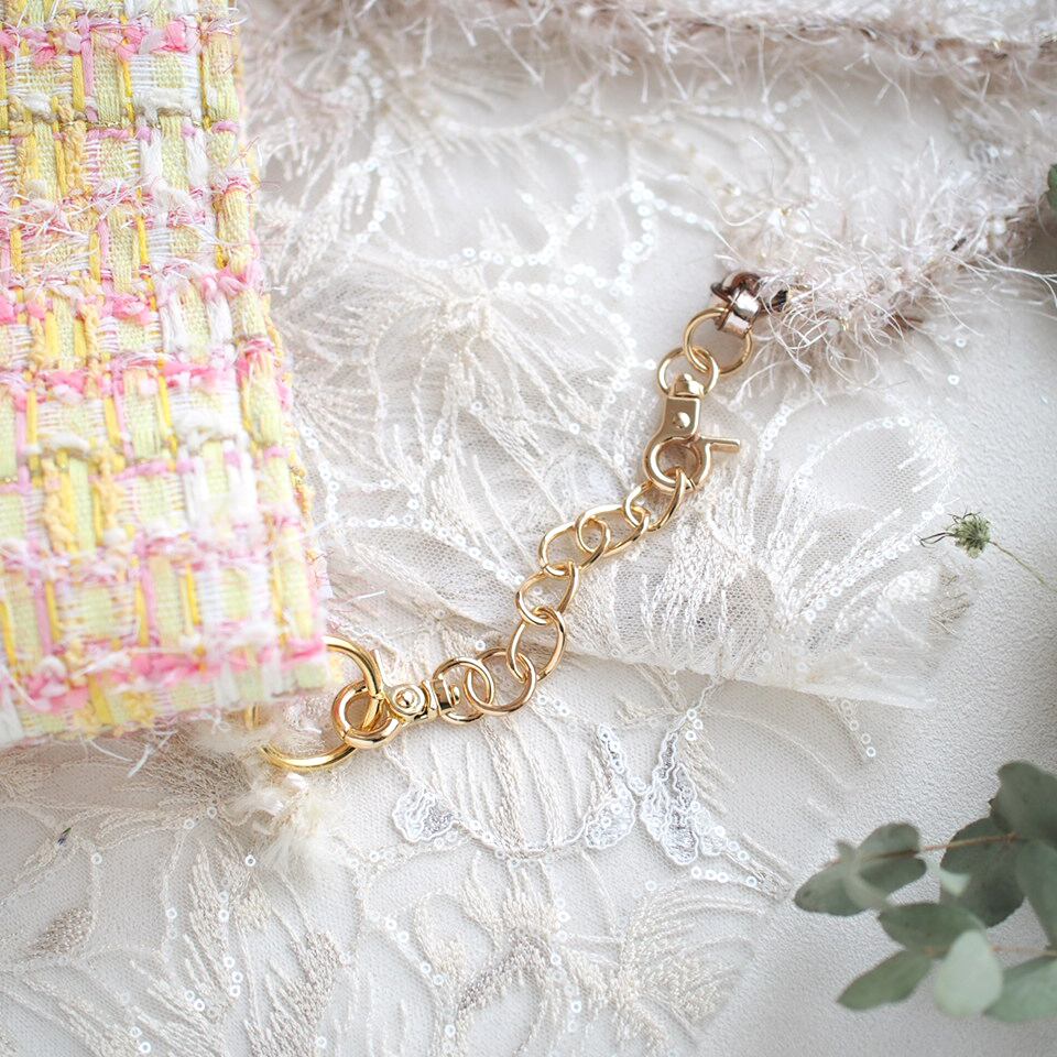 ・ストラップは、ベースにビニール素材の芯に糸を引き揃えて編み込んでいます。ポシェットサイズに入る重量は耐えれますが、ポシェットサイズより大きいバッグは負荷がかかるため、おすすめできません。