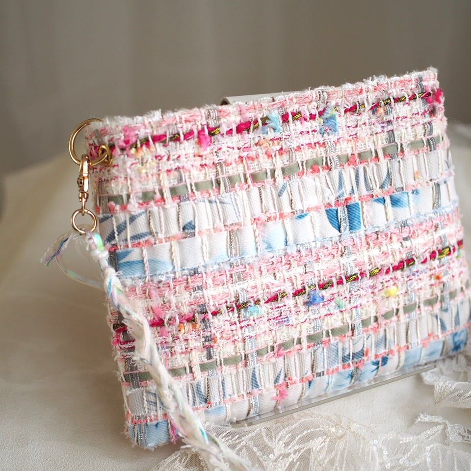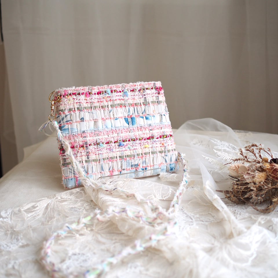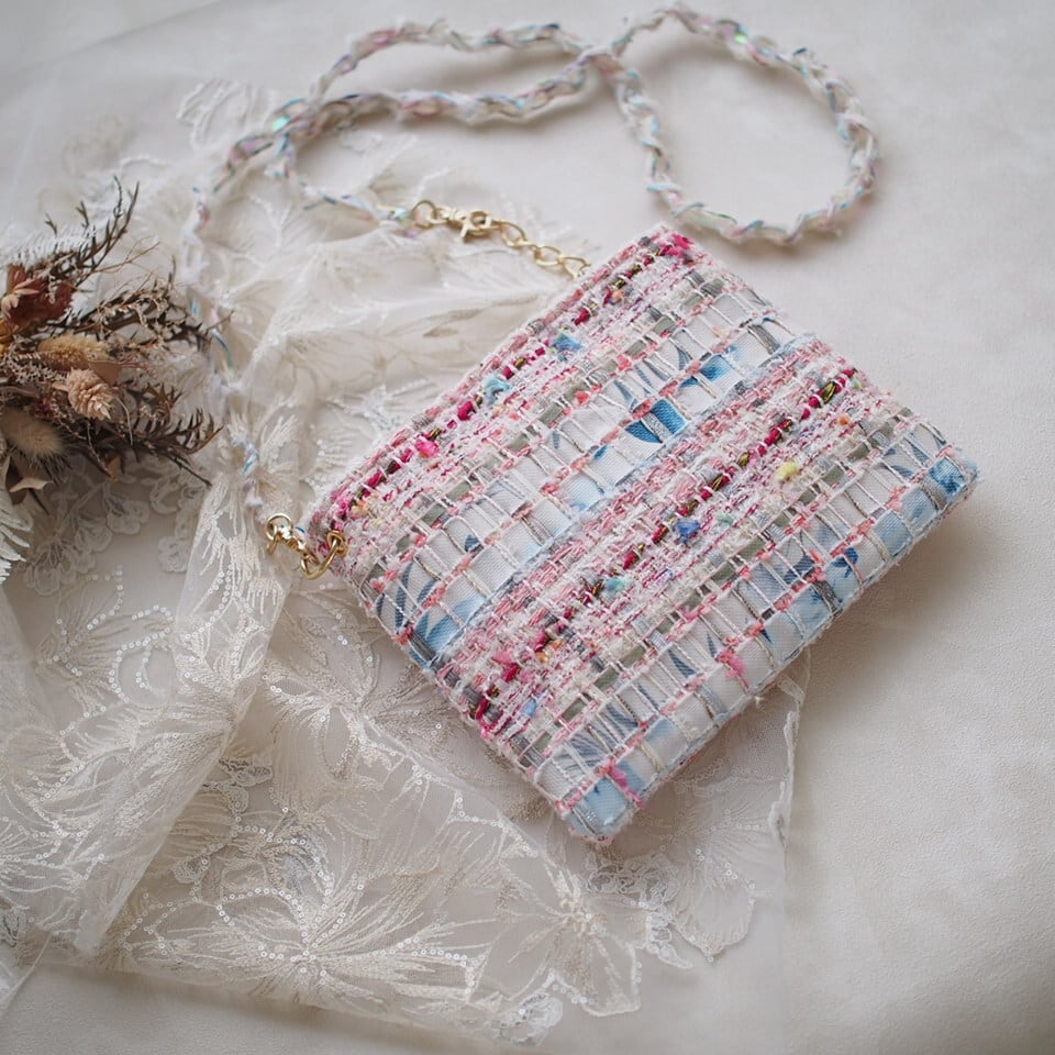 花柄の布をリボンにして織り込まれた一風変わったとってもおしゃれなツイードです。