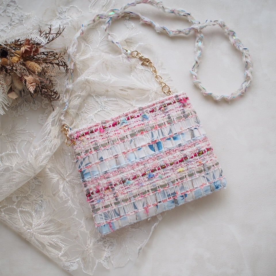 ・ストラップは、ベースにビニール素材の芯に糸を引き揃えて編み込んでいます。ポシェットサイズに入る重量は耐えれますが、ポシェットサイズより大きいバッグは負荷がかかるため、おすすめできません。