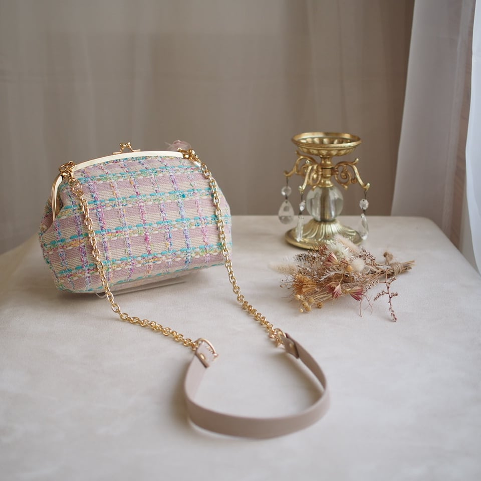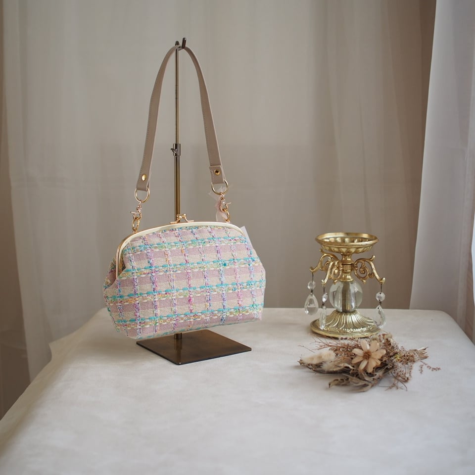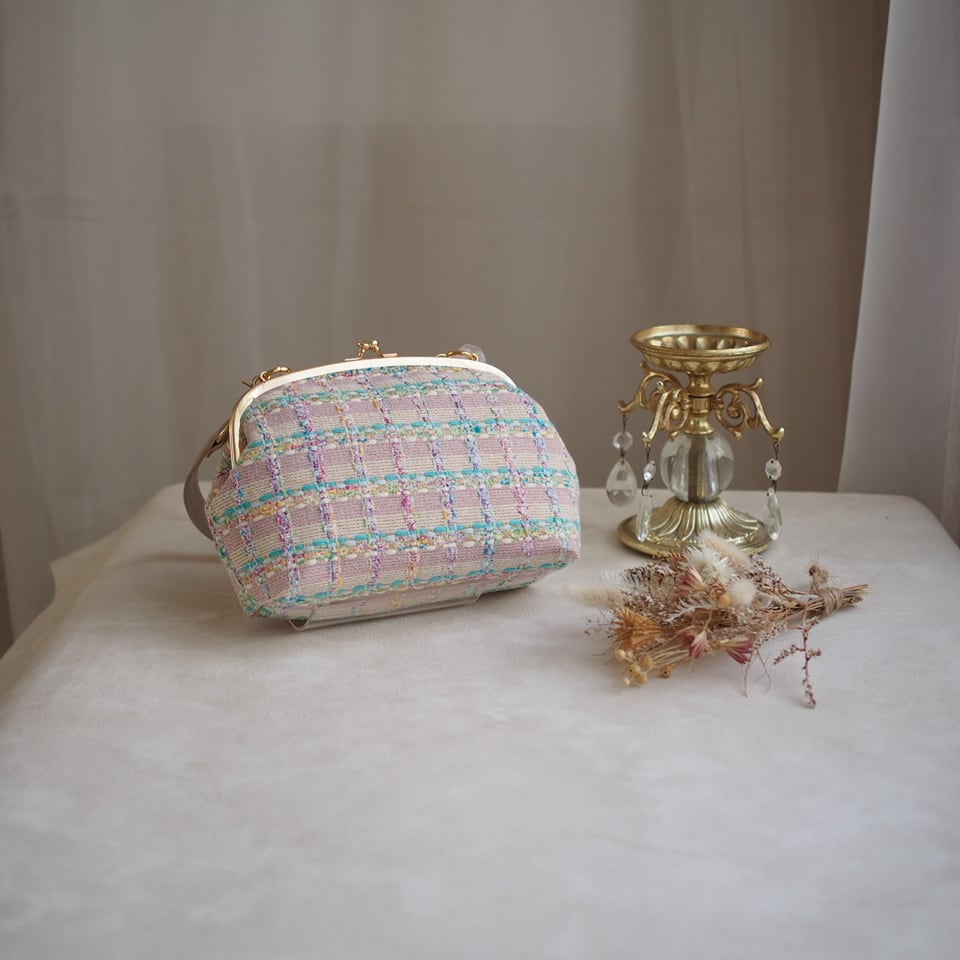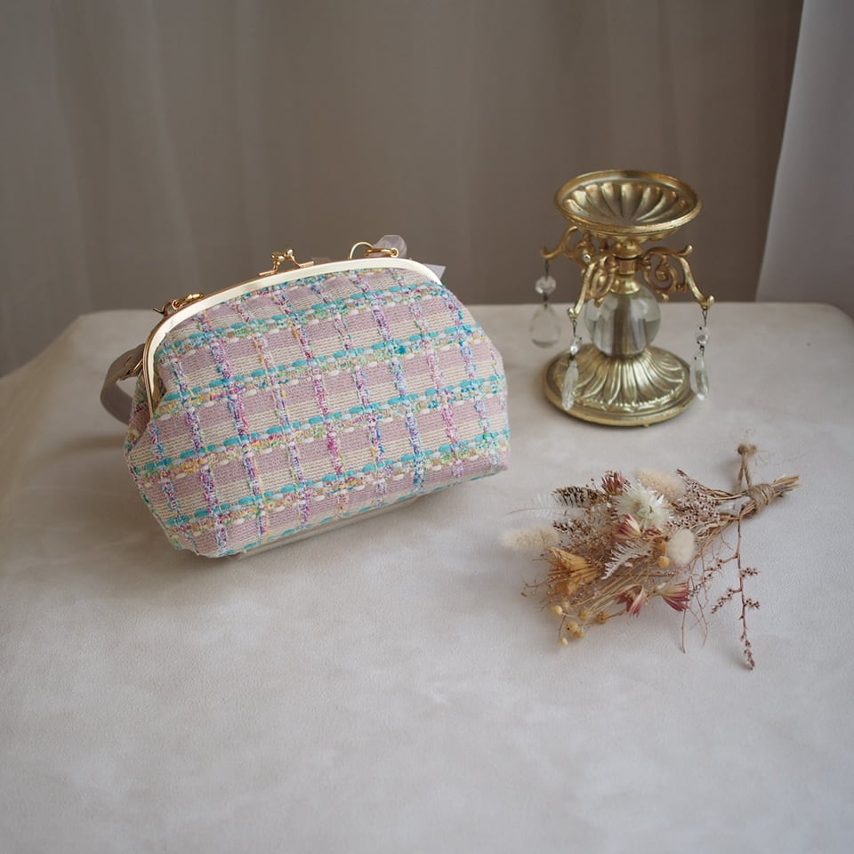 ヨーロッパツイードを使ったがま口バッグ。