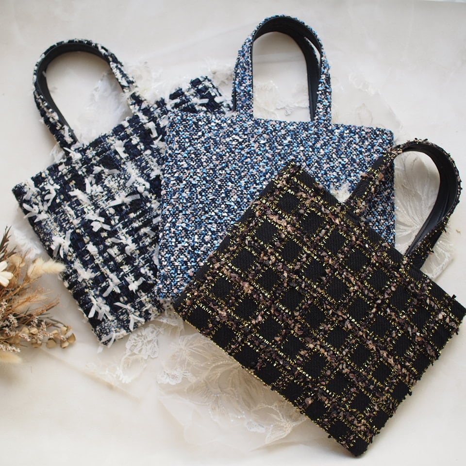 尾州ミロスツイードを使ったminiトートBAG。両面同じツイードになります。