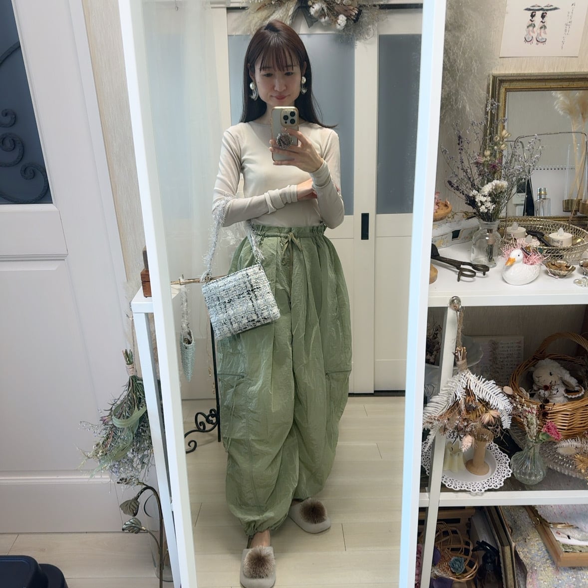 スマホとミニ財布などが入るサイズ感。