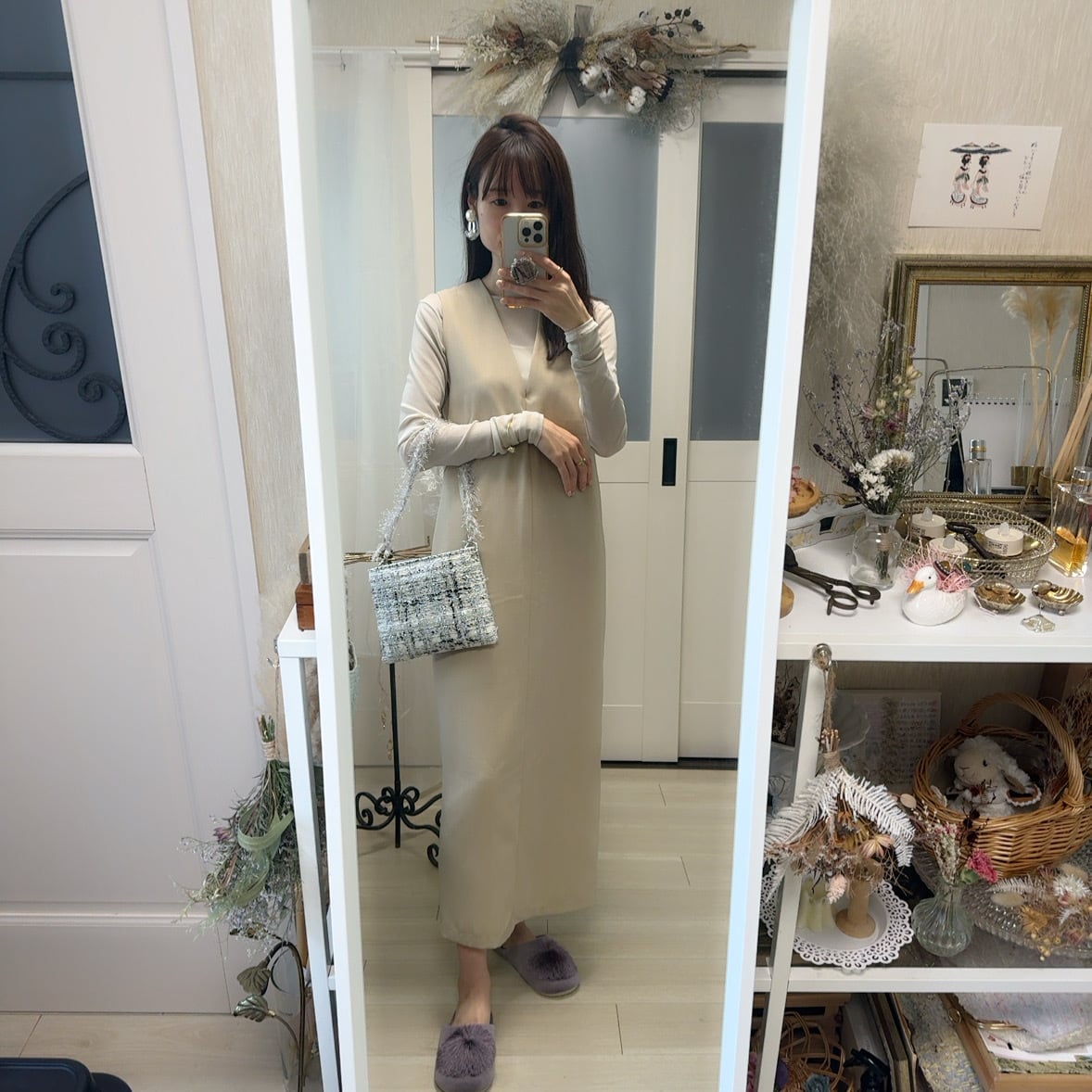 フランスTOUNIER(トゥルニエ)ツイードを使ったスマホポシェット。