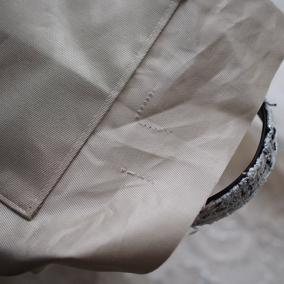 こちらは裏地の縫製ミスで、ポケット下部に縫い跡が残ってしましました。