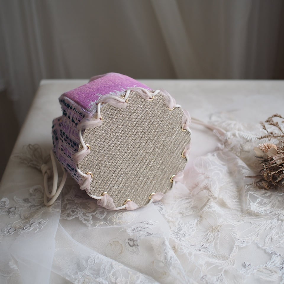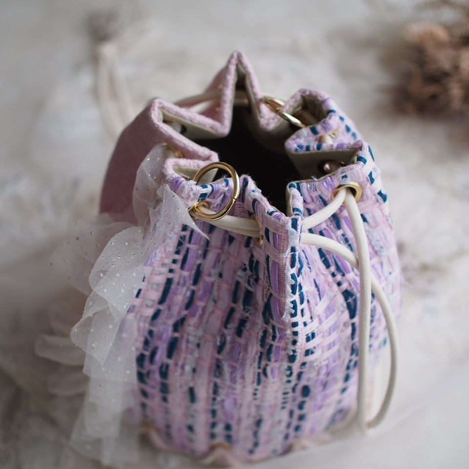 フランス製マリアケント(MALHIA KENT)ツイードを使ったラウンドミニ巾着バッグ。