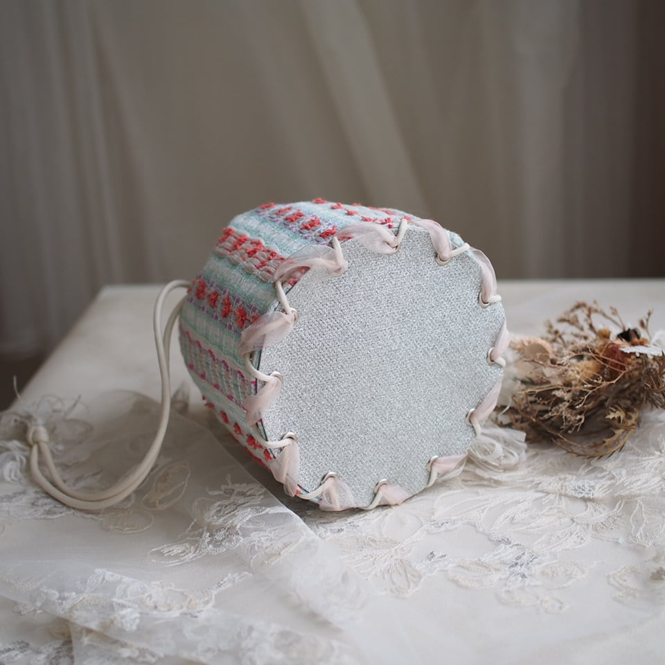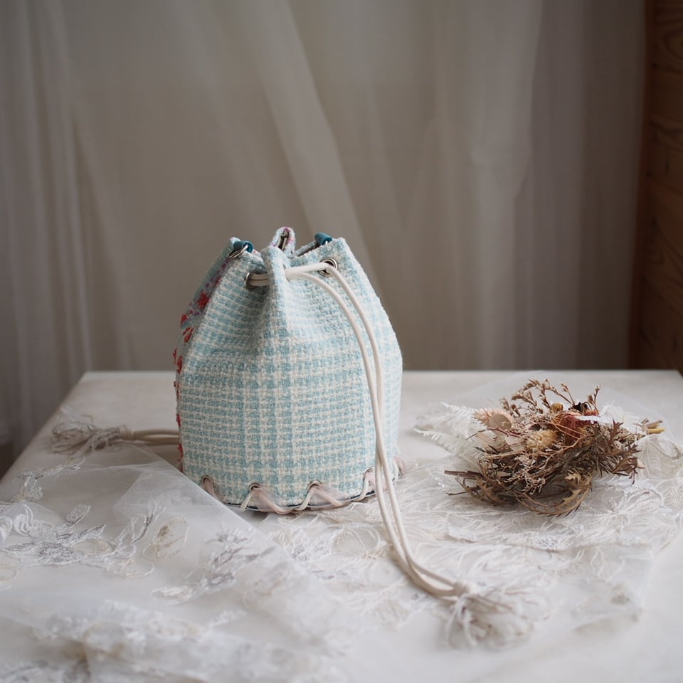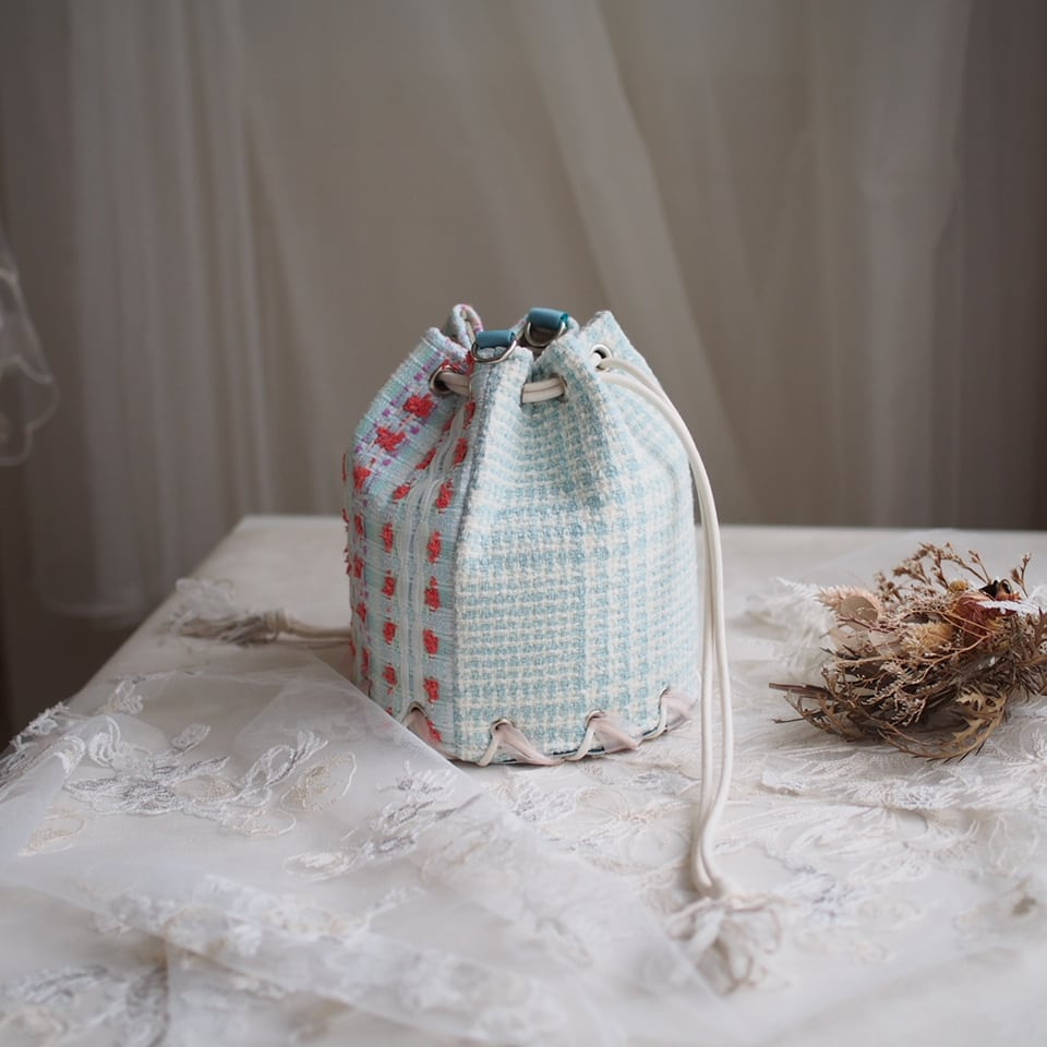 フランス製マリアケント(MALHIA KENT)ツイードを使ったラウンドミニ巾着バッグ。